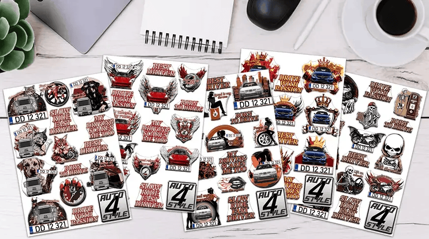 Nos designers expérimentés ont créé une grande collection d’autocollants personnalisés et élégants, parfaits pour sublimer votre voiture, moto ou camion. Choisissez parmi des designs uniques mettant en avant des silhouettes de véhicules, agrémentés d’éléments saisissants tels que des couronnes, des ailes, des filles audacieuses, voire des squelettes dans divers styles – du gothique à l’humoristique